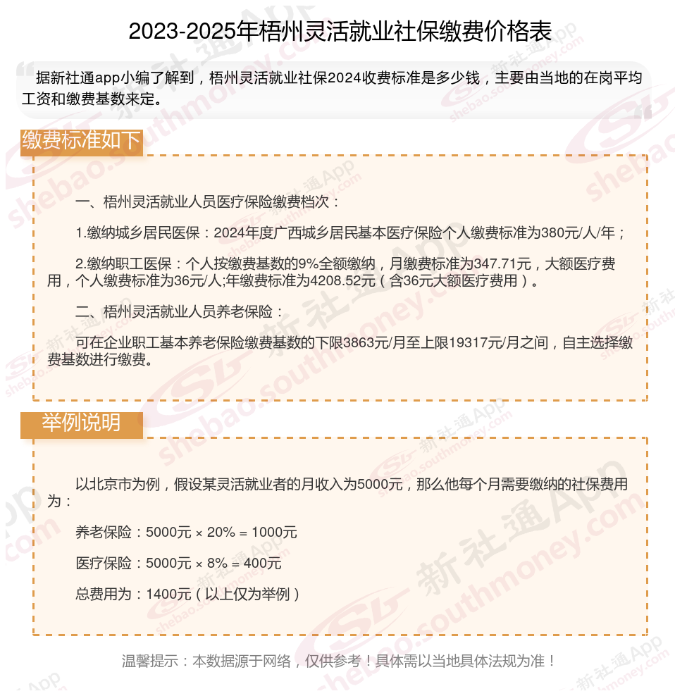 一、2024年梧州灵活就业社保缴费标准表 梧州灵活就业社保多少钱一个月?