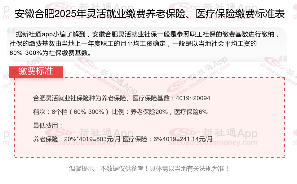 一、2024年安徽合肥灵活就业社保缴费标准表 安徽合肥灵活就业社保多少钱一个月?