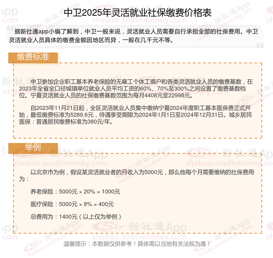 一、2025年中卫灵活就业社保缴费标准表 2025年中卫灵活就业社保多少钱一个月?