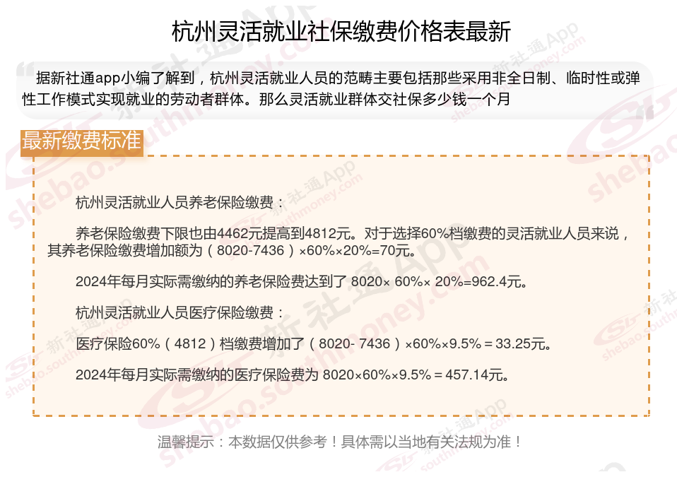 一、2025年杭州灵活就业社保缴费标准表 杭州灵活就业社保多少钱一个月?
