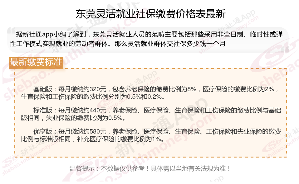 一、2024年东莞灵活就业社保缴费标准表 东莞灵活就业社保多少钱一个月?
