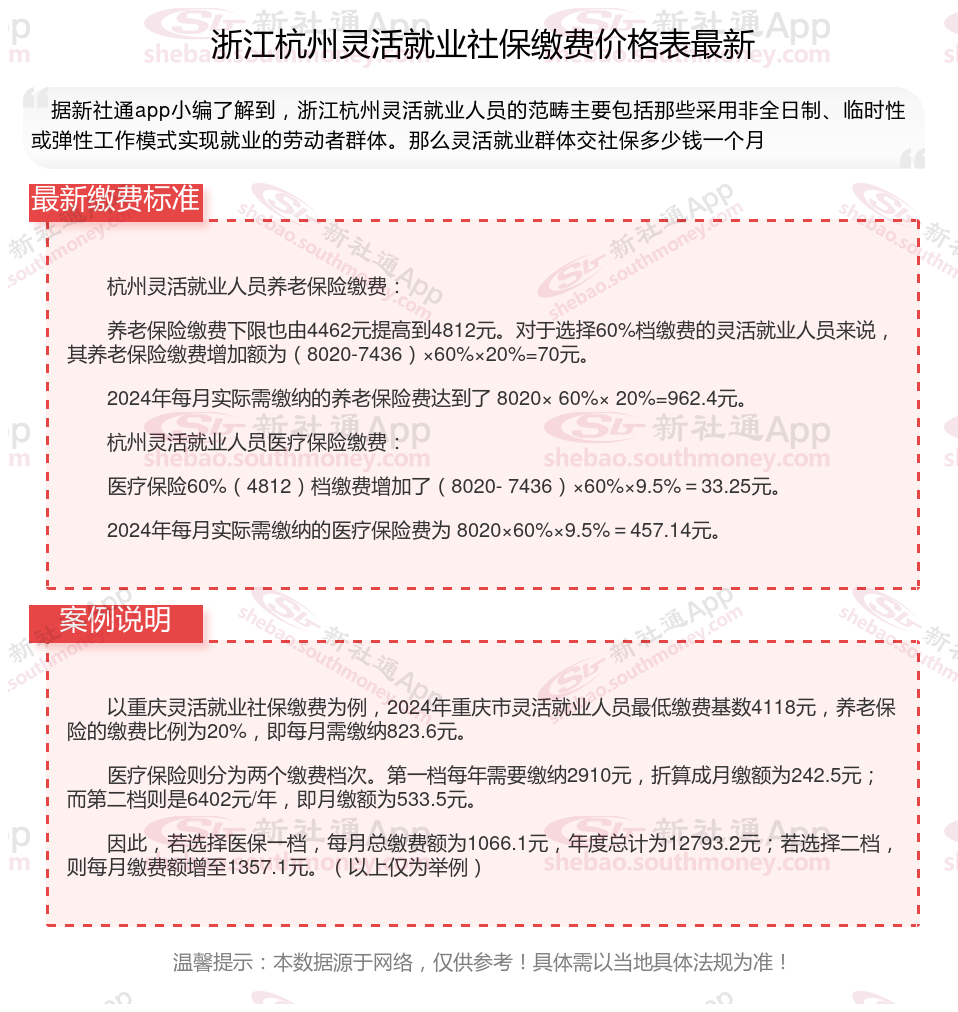二、浙江杭州2024年灵活就业社保缴费基数、比例最新消息