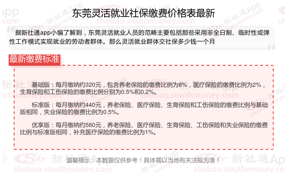 随着经济社会的不断发展,灵活就业群体日益壮大,其社保缴费问题也愈发受到关注。那么2025年东莞灵活就业人员社保需要交多少钱,缴费比例是多少?下面随新社通小编一起来看看。