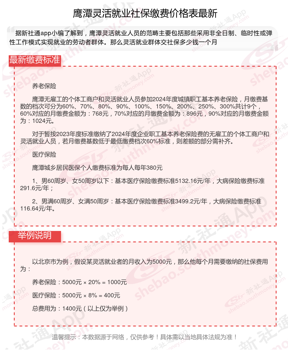 以上就是鹰潭灵活就业社保缴费的全部内容,数据及内容供参考!希望对你有帮助,欢迎关注新社通app解锁更多社保专业资讯。