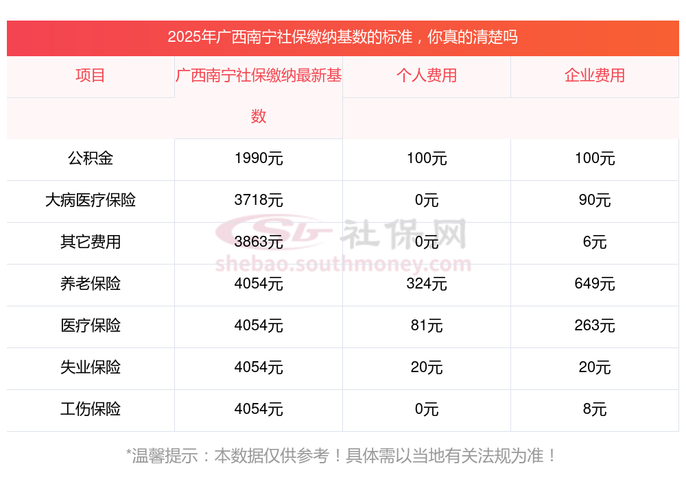 广西南宁职工社保缴费多少钱?广西南宁职工社保缴费基数最新参考为:3579.00,具体如下: