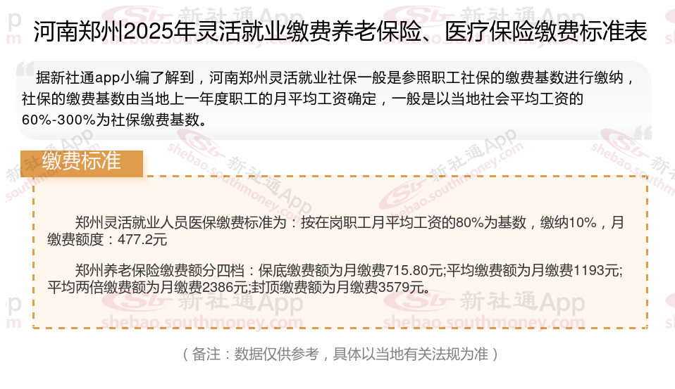 随着经济社会的不断发展,灵活就业群体日益壮大,其社保缴费问题也愈发受到关注。接下来随社保君了解一下2025年河南郑州灵活就业人员社保交多少钱的详细内容。