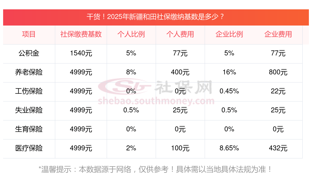 新疆和田社保缴费最新多少钱一个月?新疆和田社保缴费价格最新公布。2025新疆和田职工社保年缴费金额=社保月缴费基数*社保比例*12个月。需要提醒的,各地的社保缴费基数和比例是不一样的,因此,社保每年要交多少钱也是因地而异的。