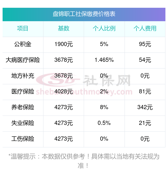 据新社通app显示,盘锦社保缴费基数2025年标准,(社保最低一个月要交多少钱)盘锦社保费用如下: