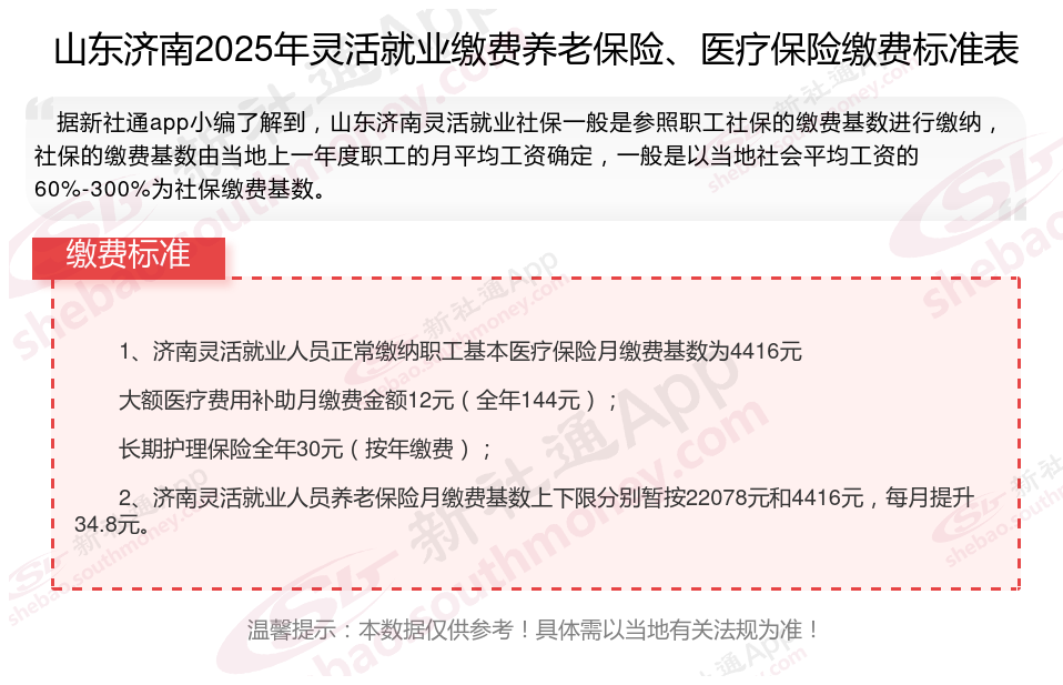 随着经济社会的不断发展,灵活就业群体日益壮大,其社保缴费问题也愈发受到关注。接下来随社保君了解一下2025年山东济南灵活就业人员社保交多少钱的详细内容。