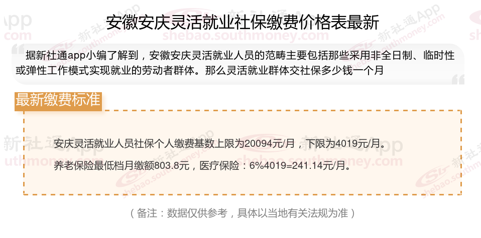 一、2024年安徽安庆灵活就业社保缴费标准表 安徽安庆灵活就业社保多少钱一个月?