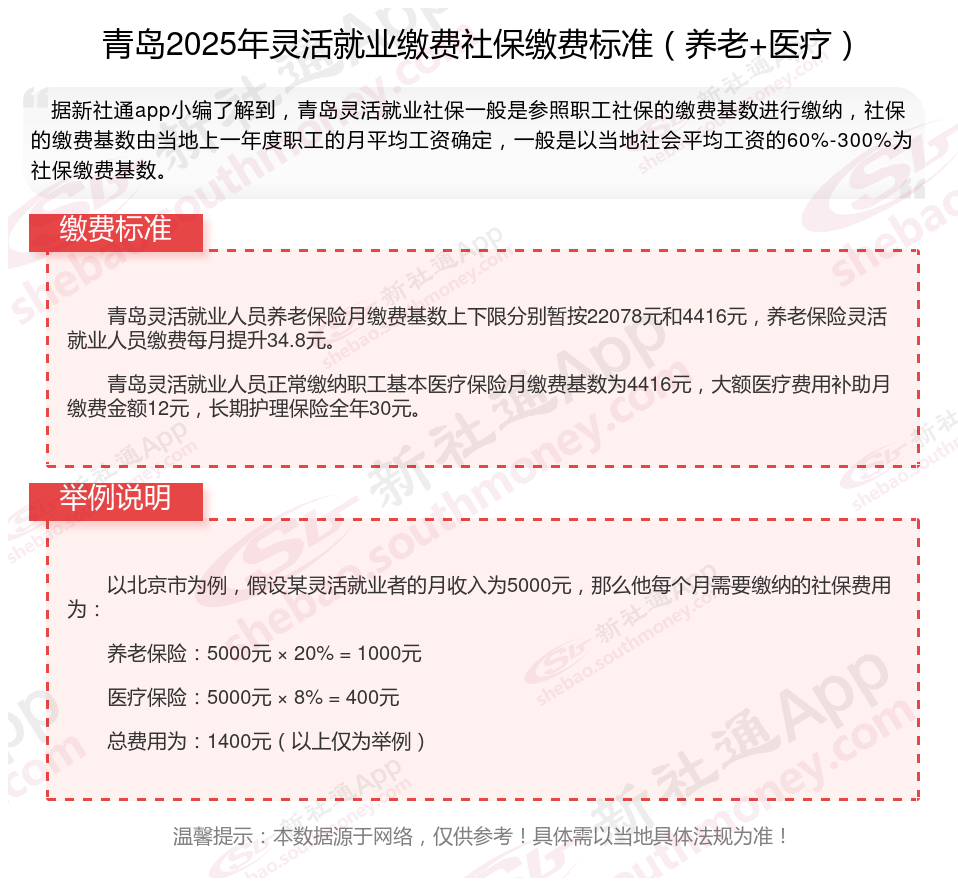 2025灵活就业社保缴费标准的调整,既体现了法规的连续性,又适应了经济社会发展的要求。灵活就业人员应根据自身情况,合理选择缴费基数和缴费比例,确保自身权益得到充分保证。那么2025年青岛灵活就业人员社保需要交多少钱,你了解2025年青岛灵活就业人员社保缴费基数及比例吗,接下来随新社通APP小编一起来看看。