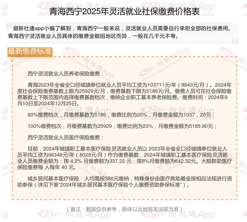 二、青海西宁2024年灵活就业社保缴费基数及比例最新消息