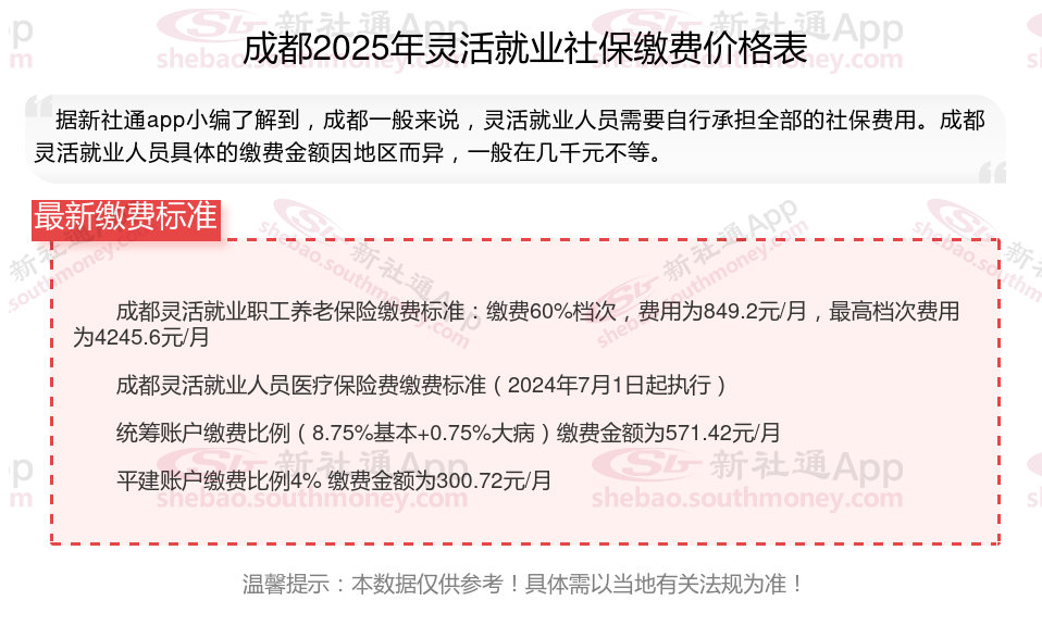 2025年成都灵活就业社保缴费标准多少钱一个月?
