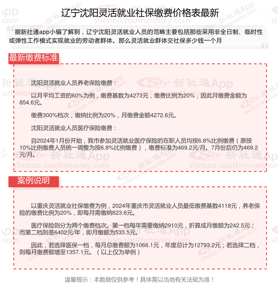 一、2024年辽宁沈阳灵活就业社保缴费标准表 辽宁沈阳灵活就业社保多少钱一个月?