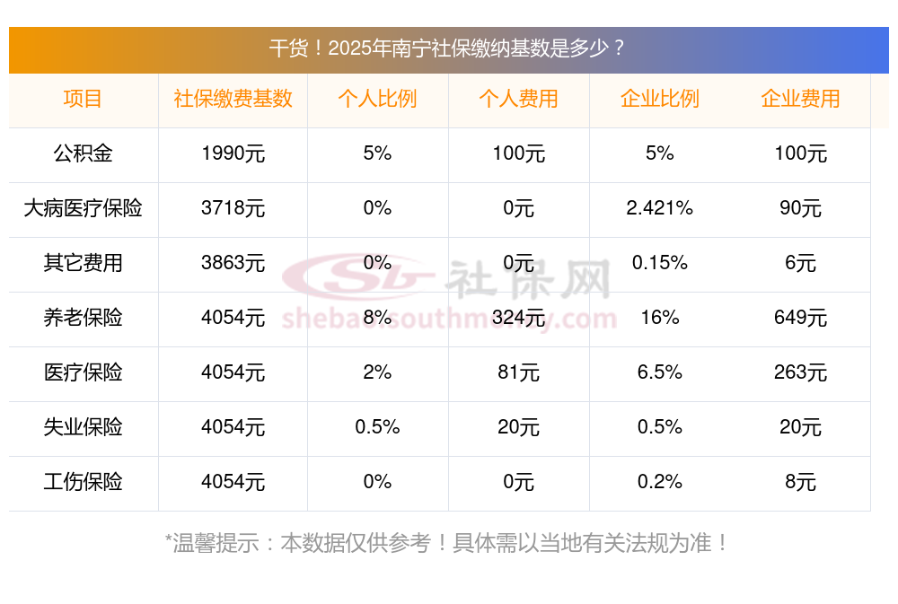 南宁社保个人缴费全解:2025年最新标准,算完心里有数了!据新社通app获悉:南宁企业职工社保缴费基数为:3579.00元。