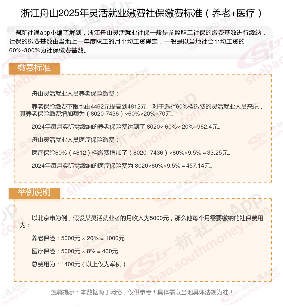 灵活就业社保是指针对灵活就业人员的社会保险制。灵活就业人员包括个体经营者、自由职业者、临时工等,他们没有固定的雇主,因此需要自行缴纳社会保险。那么2025年浙江舟山灵活就业人员社保需要交多少钱?下面随新社通小编一起来看看。