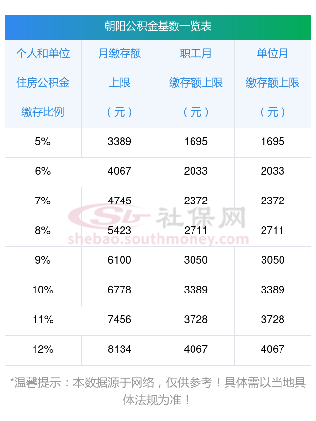 2023年北京公积金缴存基数上限下限对照表,上限比例对比缴存基数表: