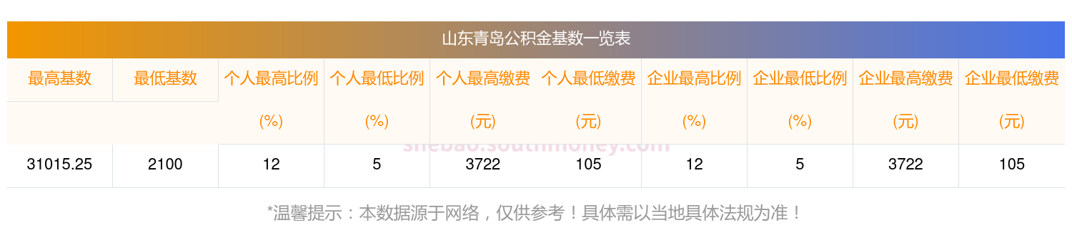 一、山东青岛缴存基数