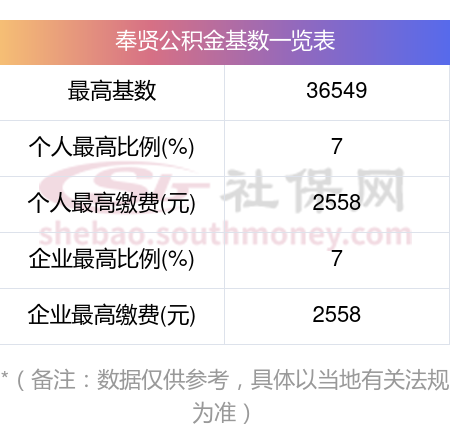 按照奉贤市相关部门公布的2022年奉贤市城镇非私营单位就业人员年平均工资计算,本年度缴存基数上限为36549元。
