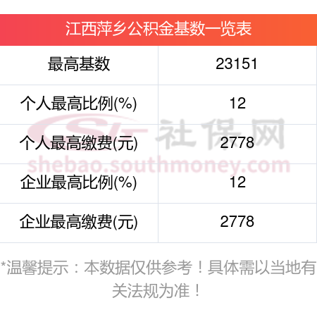 住房公积金缴存基数不超过职工工作所在地有关部门公布的上年度职工月平均工资的3倍,不低于江西省萍乡市有关部门法定的最低工资标准。