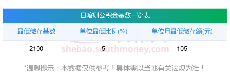 日喀则住房公积金的基数下限标准如下: