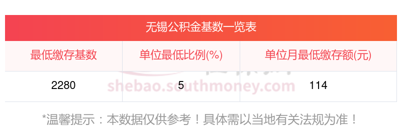 无锡住房公积金的基数下限标准如下: