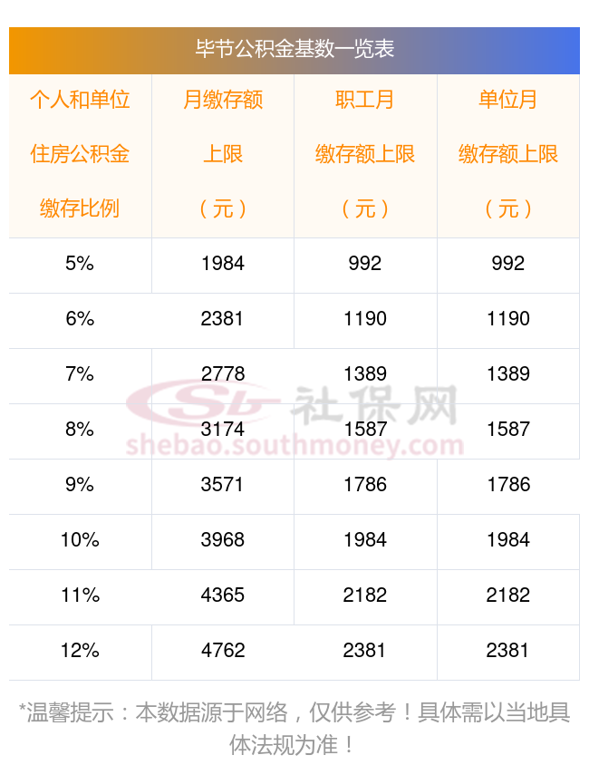 2023年北京公积金缴存基数上限下限对照表,上限比例对比缴存基数表: