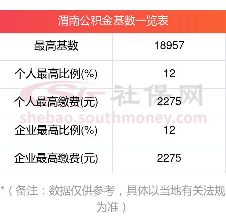 按照渭南市相关部门公布的2022年渭南市城镇非私营单位就业人员年平均工资计算,本年度缴存基数上限为18957元;根据陕西有关部门关于调整我省最低工资标准的法定,本年度缴存基数下限为2050元。