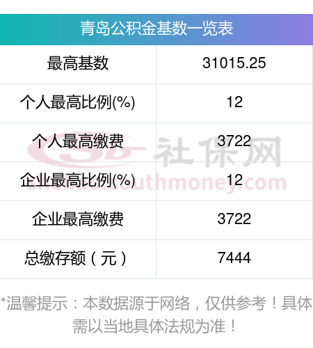 2023年度青岛住房公积金缴存基数范围为2100元-31015.25元,所以目前上限为31015.25元。2024年度青岛住房公积金缴存基数范围暂未公布。