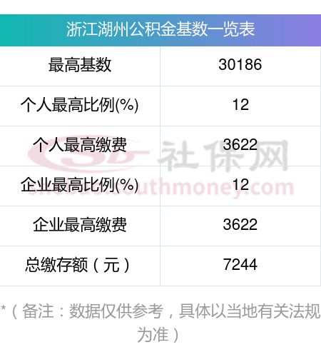 按照湖州市相关部门公布的2022年湖州市城镇非私营单位就业人员年平均工资计算,本年度缴存基数上限为30186元;根据浙江有关部门关于调整我省最低工资标准的法定,本年度缴存基数下限为4480元。