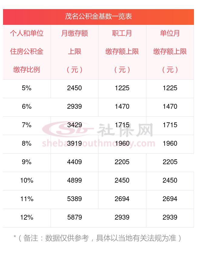 茂名住房公积金缴存比例严格执行以下法定,即缴存比例最低不得低于5%(单位和个人缴存比例均不得低于5%),最高不得高于12%(单位和个人缴存比例均不得高于12%),单位可在5%-12%区间内自主确定住房公积金缴存比例,缴存比例一律取整数。