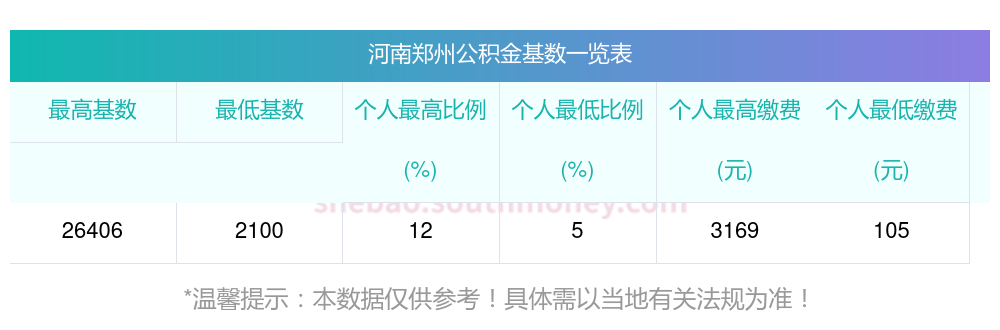河南郑州住房公积金的基数上限、下限、比例如下: