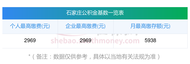 (二)住房公积金月缴存额上限:2023年度石家庄住房公积金月缴存额上限为5938元(单位和职工合计)。