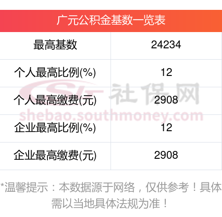 住房公积金缴存基数最高不超过24234元,最低不低于1970元。