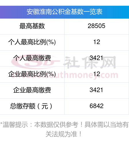 住房公积金缴存基数最高不超过28505元,最低不低于1930元。
