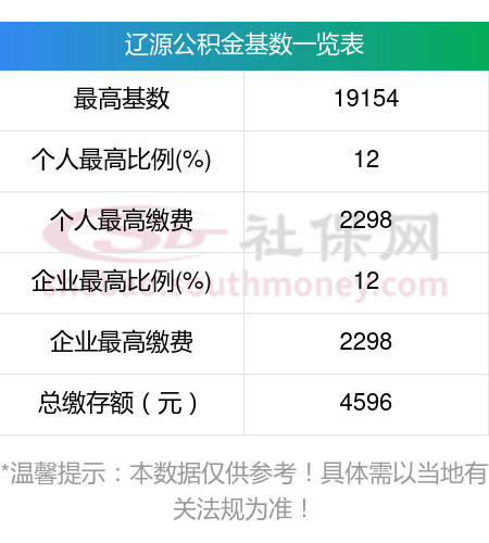按照辽源市相关部门公布的2021年辽源市城镇非私营单位就业人员年平均工资计算,本年度缴存基数上限为19154元。