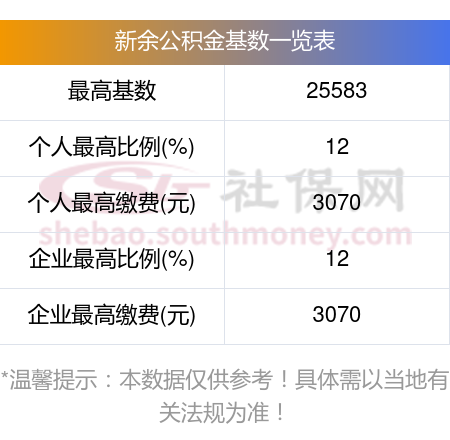得知:2024年新余公积金基数上限:25583