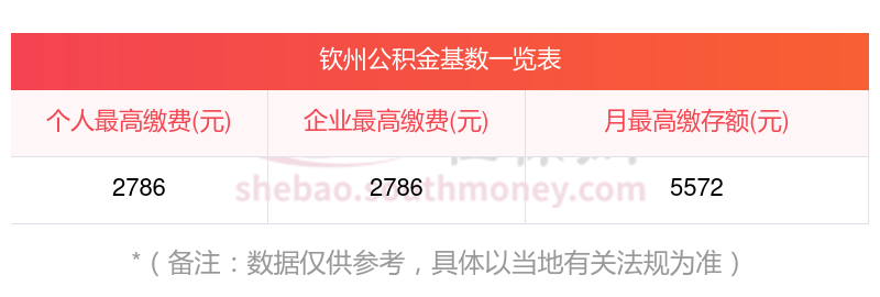 (二)住房公积金月缴存额上限:2024年度钦州住房公积金月缴存额上限为5572元(单位和职工合计)。