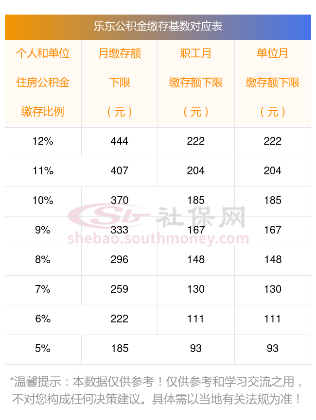 通过北京已经公布的公积金基数计算出不同的缴存比例每月要缴费的费用表: