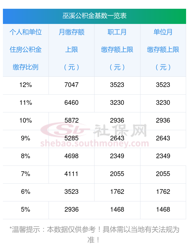公积金就像是我们生活中的一个小金库,能在关键时刻为我们提供资金支持。今年2024年,公积金将又迎来调整了。最新巫溪住房公积金基数2024标准调整了吗?现在职工每月缴费公积金是多少钱?目前公积金缴费基数、缴存比例、月缴存额是多少?个人要出部分如何计算的?