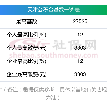 (二)住房公积金月缴存额上限:2024年度天津住房公积金月缴存额上限为6606元(单位和职工合计)。