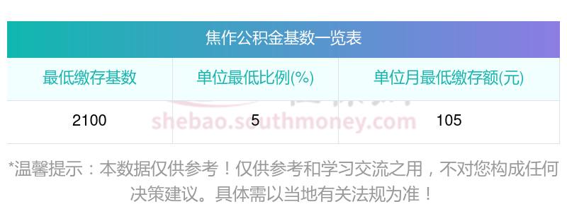按照焦作市相关部门公布的2022年焦作市城镇非私营单位就业人员年平均工资计算,本年度缴存基数下限为2100元;依据是,根据焦作有关部门关于调整我省最低工资标准的法定,本年度缴存基数下限为2100元。
