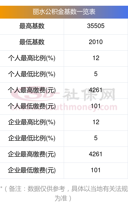 (二)住房公积金月缴存额上限:2024年度丽水住房公积金月缴存额上限为8522元(单位和职工合计)。