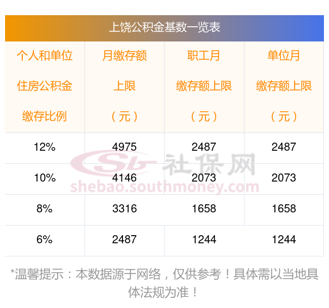 公积金缴存比例是怎么定的?全国统一法定的吗?缴存比例也叫应缴公积金的系数的,缴存比例,一般指住房公积金的缴存比例,就是你应缴公积金的系数,它和本人月平均基数和应缴系数都有关系,平均工资额和系数的增加或减少,应缴公积金的数额都会相应变化。下面跟随社保网小编来了解:上饶的最新公积金缴存比例及可以选择的比例多少种。