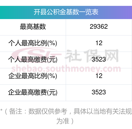开县住房公积金月缴存额上限是多少?住房公积金缴存比例及基数范围如下: