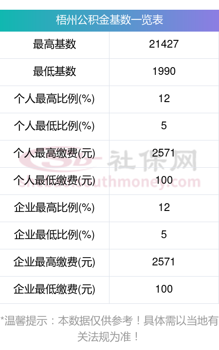 梧州住房公积金月缴存额上限是多少?住房公积金缴存比例及基数范围如下: