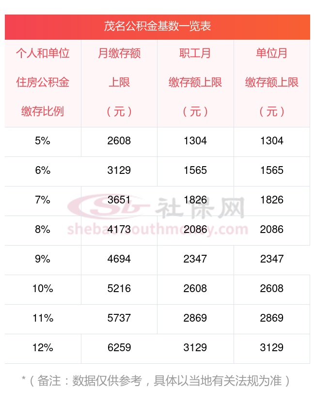 茂名住房公积金缴存比例严格执行以下法定,即缴存比例最低不得低于5%(单位和个人缴存比例均不得低于5%),最高不得高于12%(单位和个人缴存比例均不得高于12%),单位可在5%-12%区间内自主确定住房公积金缴存比例,缴存比例一律取整数。