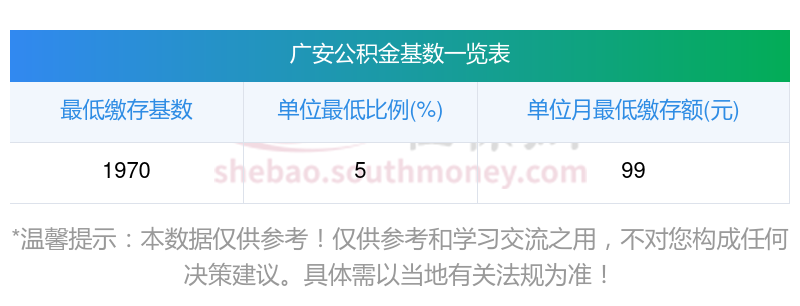 广安住房公积金月缴存额下限是多少?住房公积金缴存比例及基数范围如下: