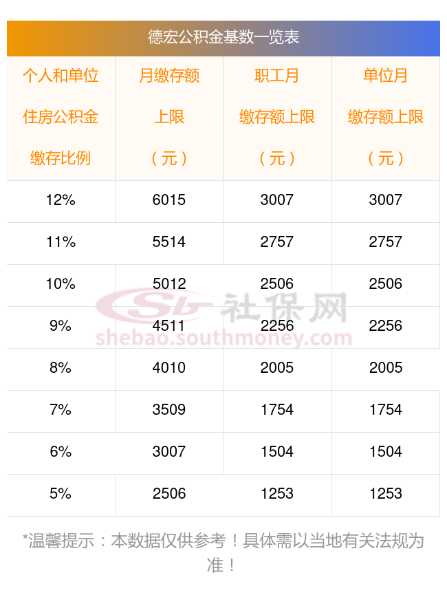 每月缴纳的住房公积金你了解多少?德宏住房公积金年度住房公积金缴存基数比例最低5%。如按照最低基数2420元或最高基数35283元与缴存比例计算出不同缴费金额,职工就可以得知每月自己要出多少钱,这样能了解自己公积金账户的余额。