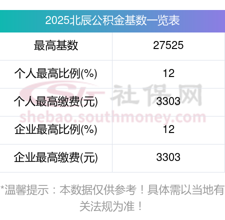 2025年北京公积金缴存基数上限下限对照表,上限比例对比缴存基数表: